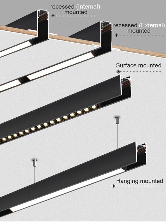 Lišty jsou vhodné jak pro klasickou přisazenou montáž na strop či stěnu, tak je lze rovněž elegantně zavěsit na lanka. Díky tomu, že jsou lišty vyrobeny z hliníku, lze je snadno zakracovat nebo případně pomocí spojek a úhlových prvků libovolně prodlužovat do různých tvarů.
