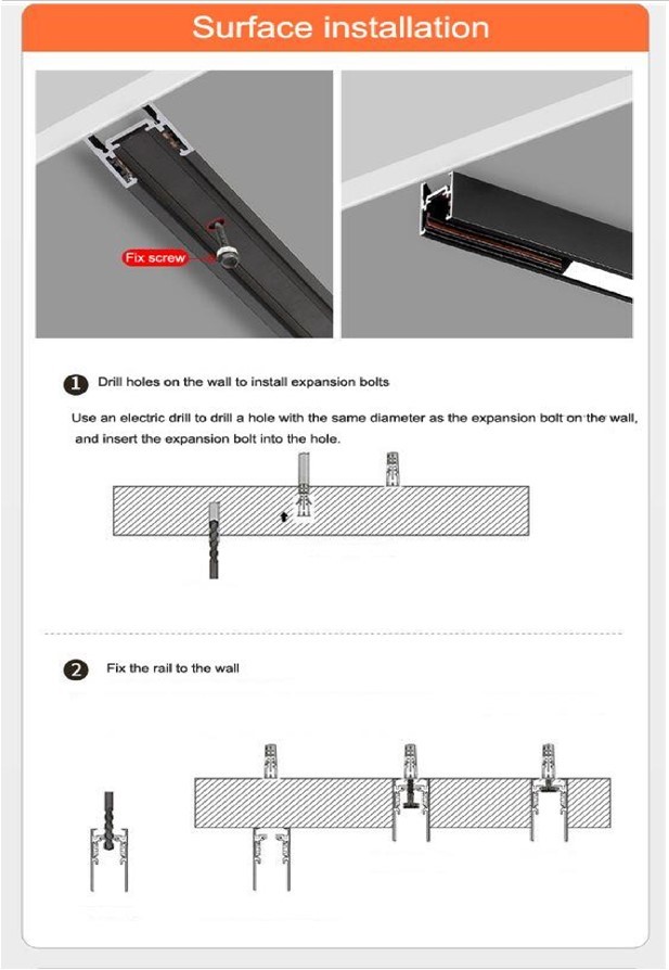 Přisazená nebo zavěšená lišta MAGNETIC RAIL je speciální produkt vyrobený ze slitiny hliníku. Do lišty se jednoduše vloží svítidla určená pro MAGNETIC RAIL a přiměřeně silný magnet svítidlo zafixuje na pozici. Takto uložená svítidla lze libovolně v liště posouvat nebo zaměňovat za jiné typy. Magnetic světla jsou pak napájena stejnosměrným bezpečným napětím DC 48V. Pro napájeni mohou být použity jak externí napájecí zdroje, tak i speciální zdroje určené přímo k instalaci do lišty.